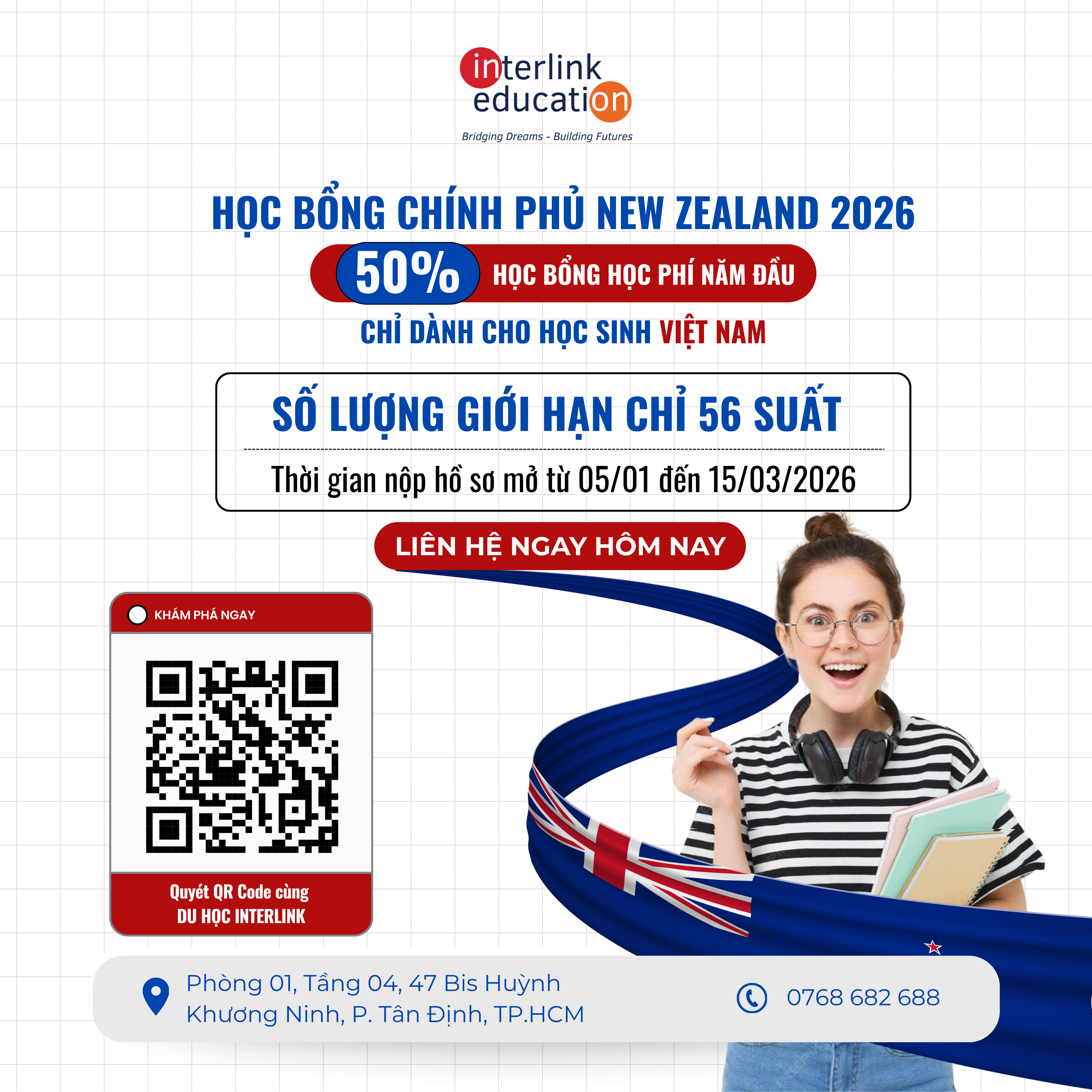 Chỉ còn 56 suất học bổng NZSS 2026! Đừng để cơ hội lớn này tuột khỏi tay. Hãy để Du Học Interlink, với kinh nghiệm dày dặn, hỗ trợ bạn xây dựng hồ sơ cạnh tranh nhất!