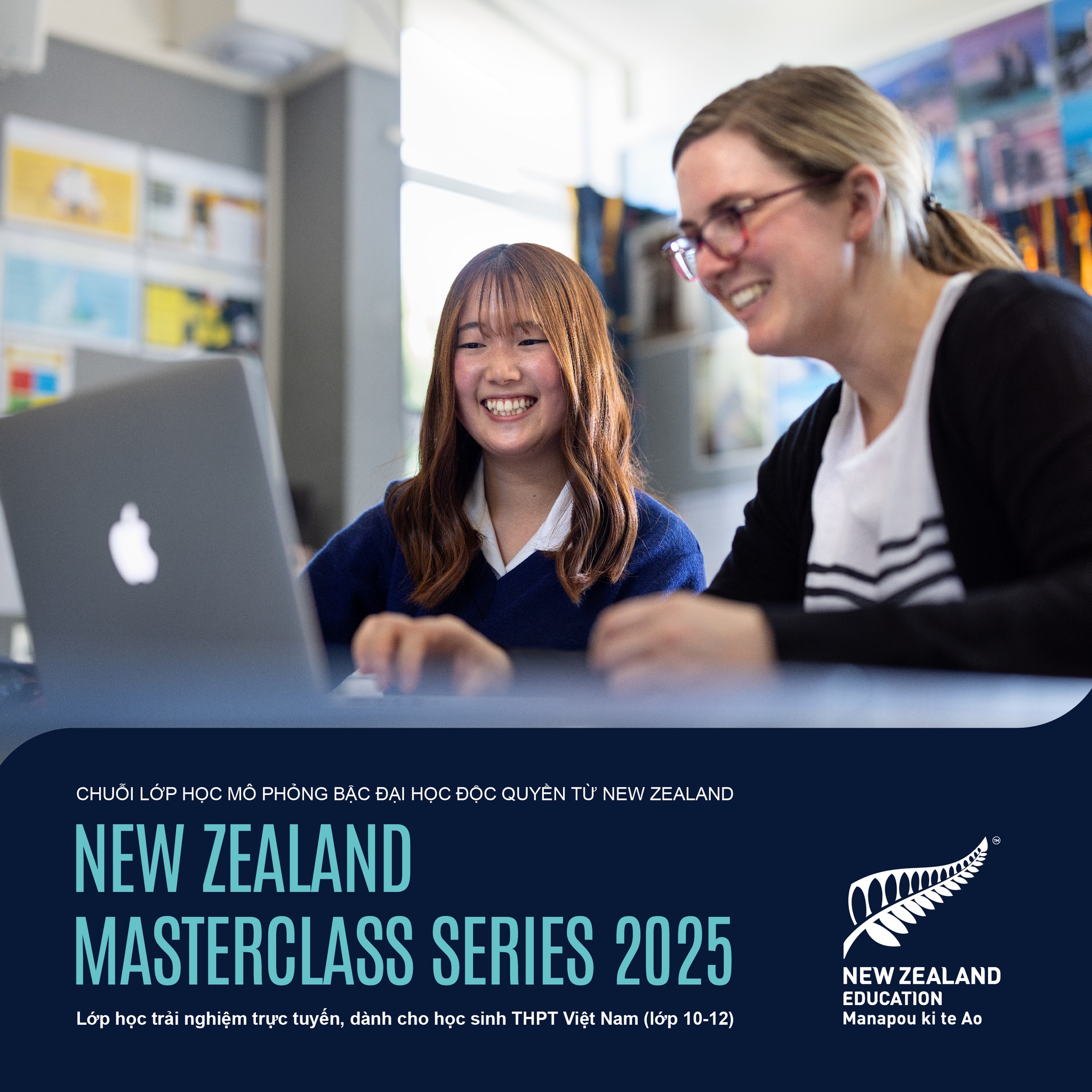 Vào mỗi cuối tuần từ 20/9 - 05/10/2025, học sinh THPT Việt Nam có thể thử hóa thân thành sinh viên đại học trên ghế giảng đường New Zealand thông qua chuỗi lớp học mô phỏng bậc đại học New Zealand Masterclass Series, với: